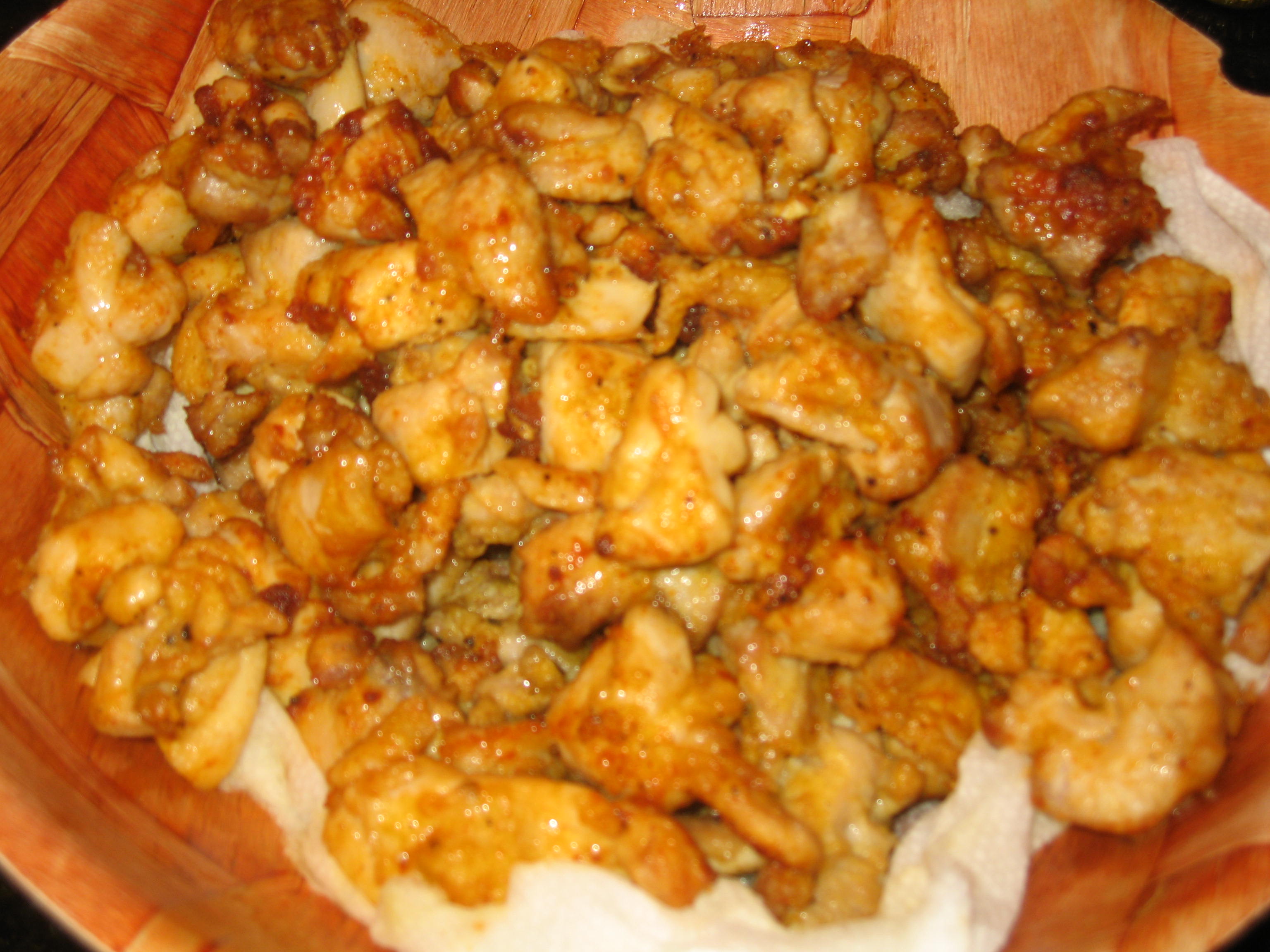 I was browsing the internet the other day and came across a friends photo blog of his recent visit to India on facebook. Being a self proclaimed foodie, watching the slideshow was very torturous, but it got some really good memories of places to eat in New Delhi and Hyderabad. I thought the best way to deal with this would be to cook this dish. I called my cousins and we decided to meet up that day. I offered to make chicken 65 as an appetizer and my cousin offered to make spaghetti in a turkey meat sauce(yum) for dinner. Ultimately I was very glad with the results of my dish. I think this has been my best attempt so far in making this dish. Here is the recipe -