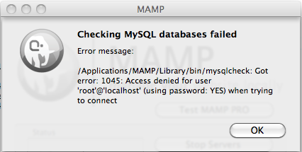 I started seeing the following error every time I started MAMP. This began after I changed the root password for my MAMP installation on my MBP.