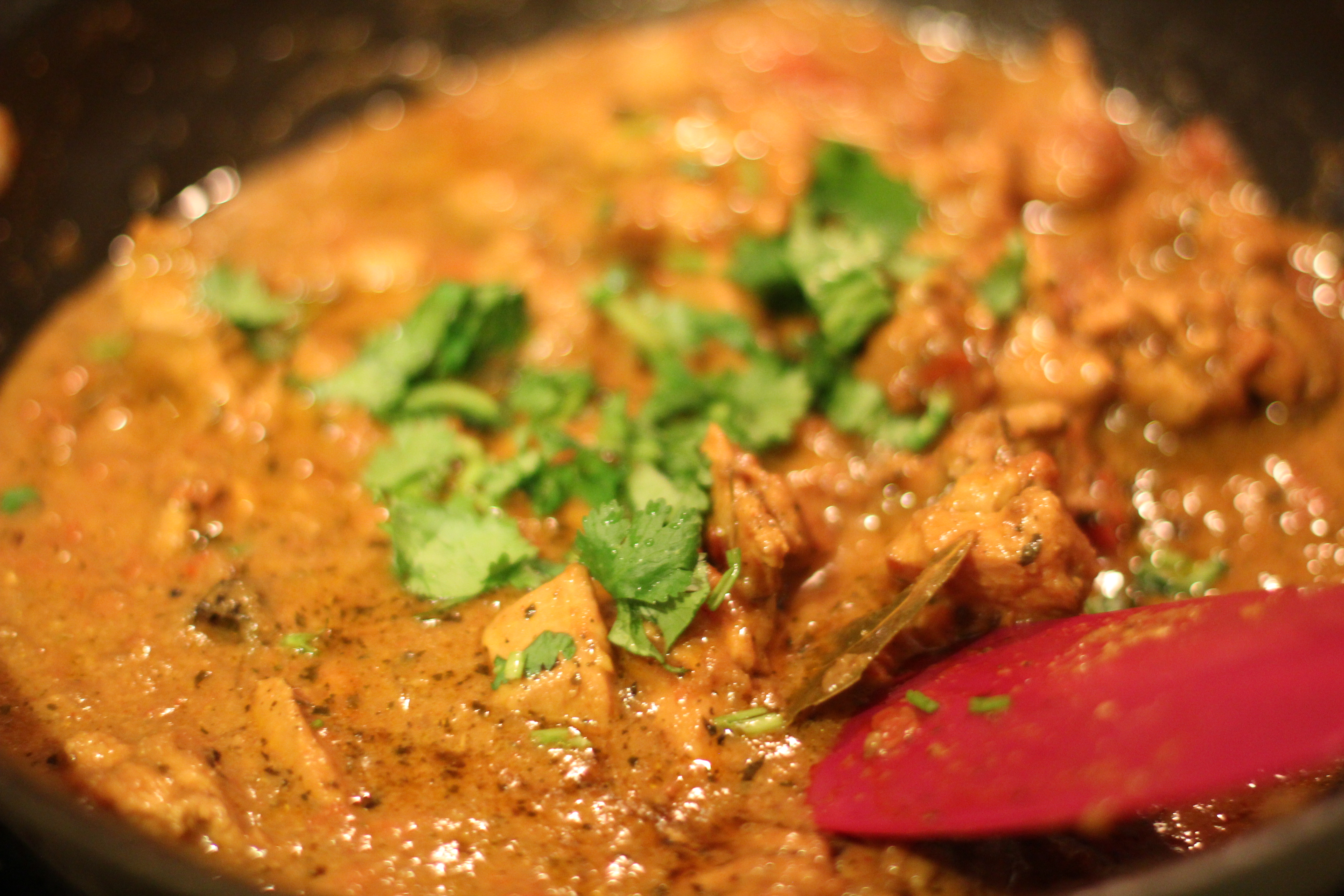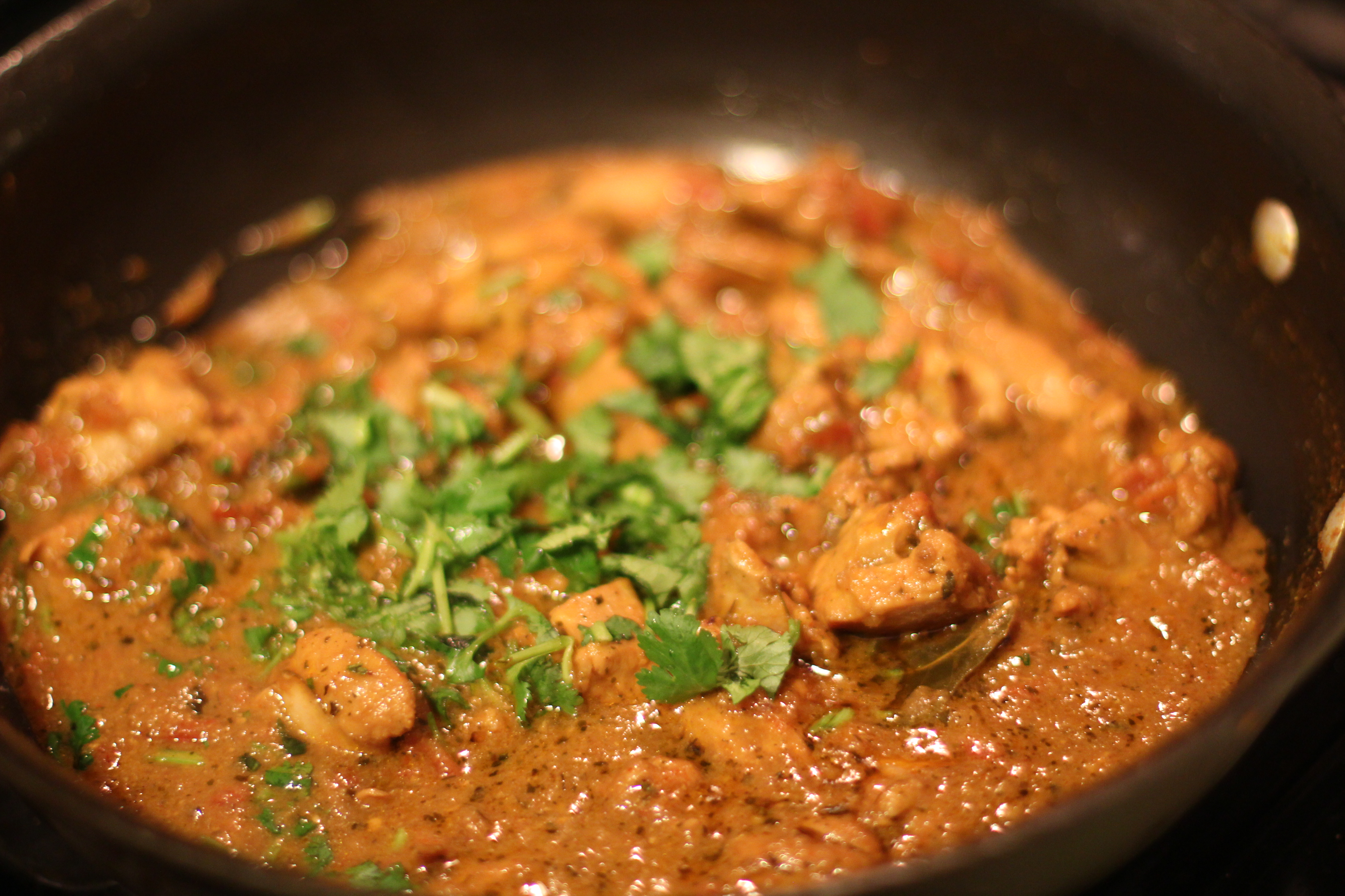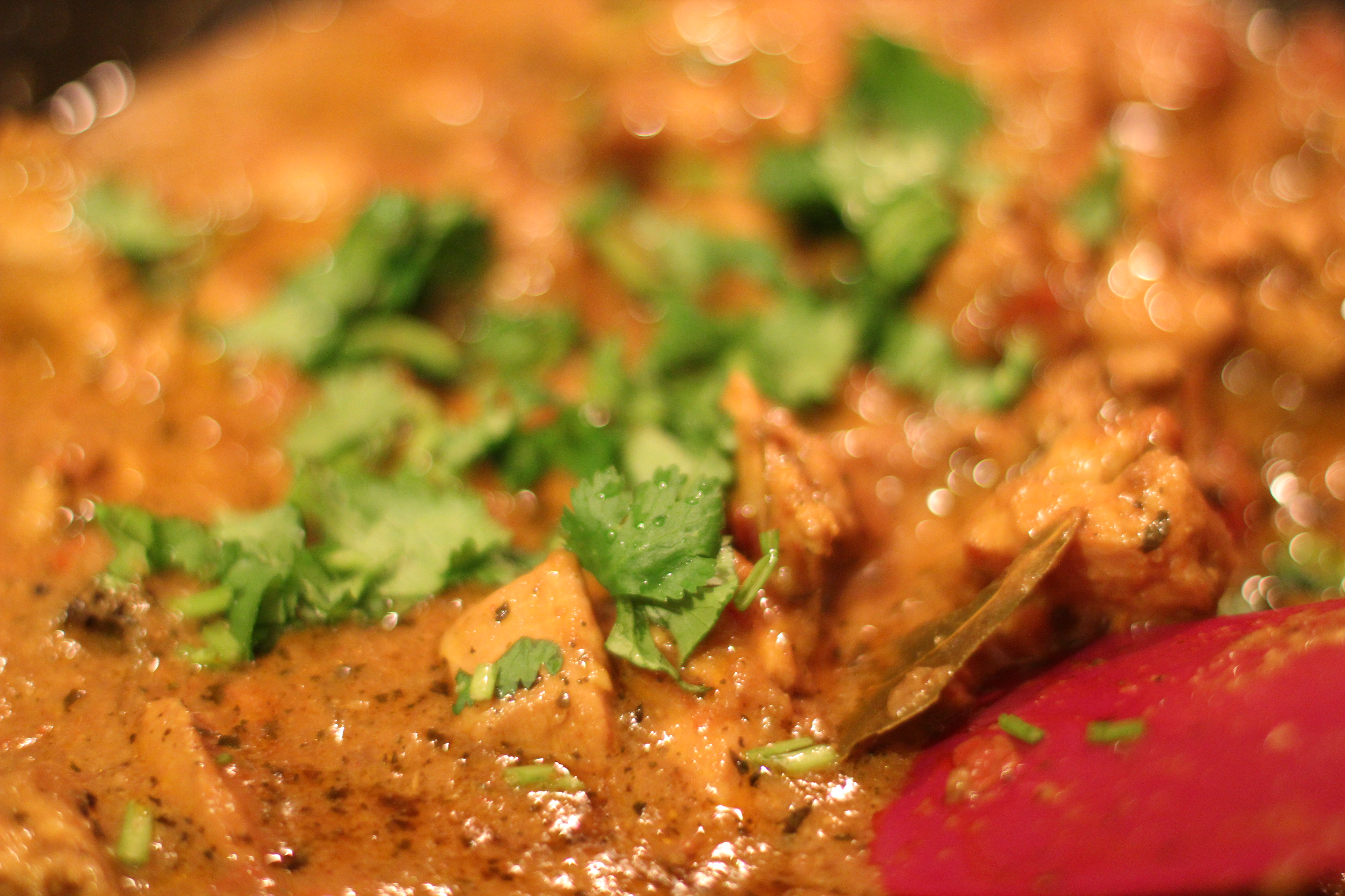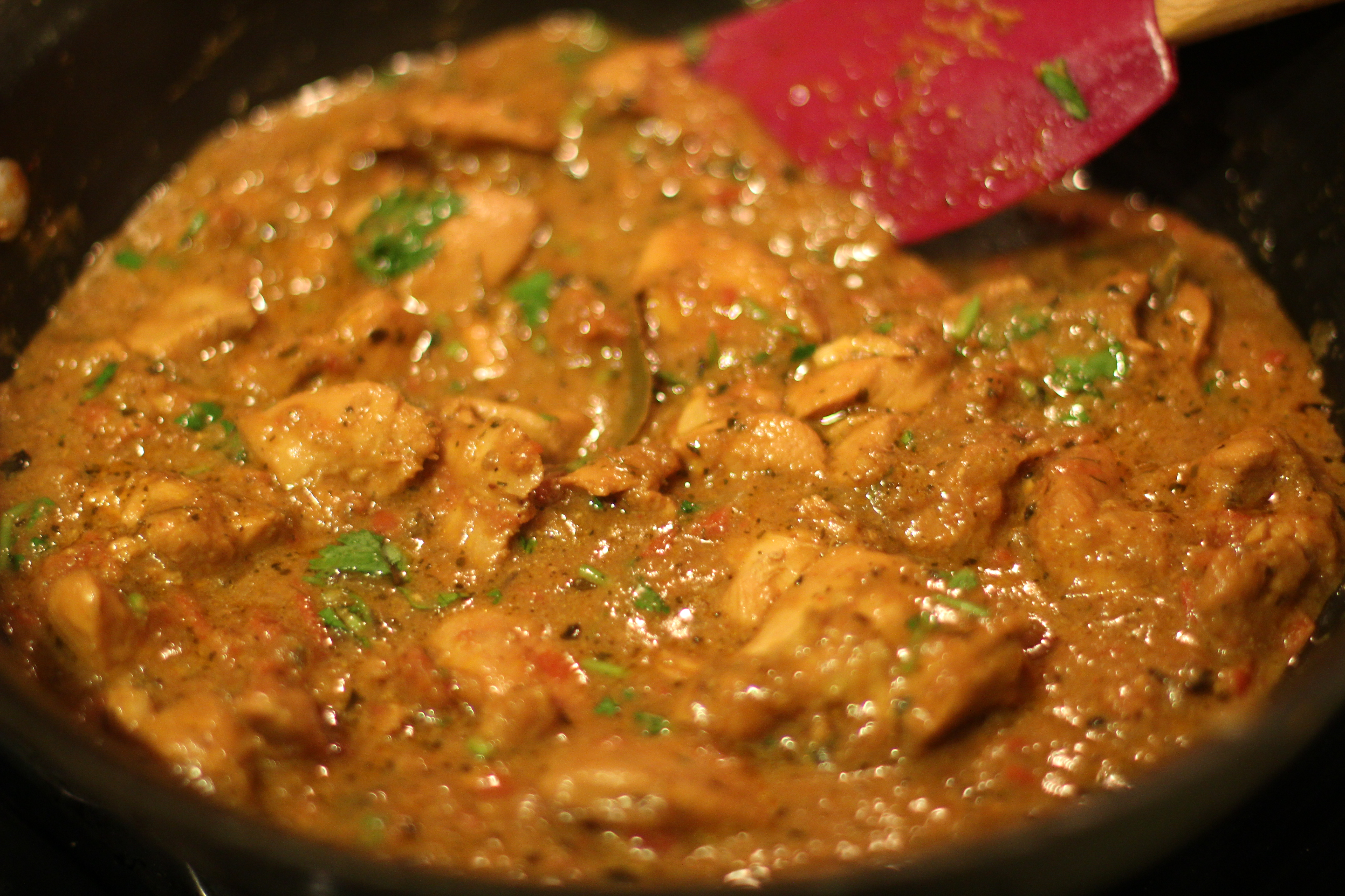 Add half of the cilantro to the pan and mix it into the sauce. Garnish with the remaining cilantro and serve this with hot chapati’s or Naan.
