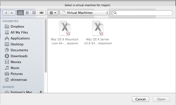 In my previous setup I had two VM’s, one was a mountain lion VM and the other was a Snow Leopard VM for VMWARE. I had backed these two vmwarevm files on my time machine. After re-installing vmware fusion I restored the vmwarevm files in its default location.